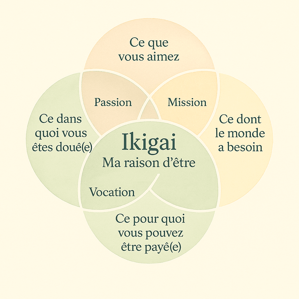 Trouver votre Ikigaï, c’est donner une direction claire à votre vie, alignée avec vos valeurs, vos aspirations et vos talents. C’est avancer avec plus de justesse, en cohérence avec ce qui compte vraiment pour vous.